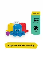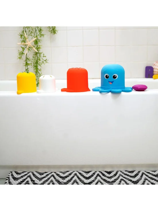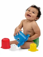 Help your baby have fun withOcean Explorers Opus’s Stack & Stream stacking cups from BRIGHT STARTS. Includes 4 cups and 1 water snail. Helps your baby develop sensory, reason and cognitive skills GOOD MOVEMENT. Designed for baby to explore as they stack up. 4 ocean-themed cups come in different sizes, with different textures for baby to grip and enjoy the difference between each cup. Or enjoy a color-changing Opus in warm water! Perfect for swimming or playing on the floor. Largest cup measures 4.10 x 3.48 x 6 inches, smallest cup measures 3.96 x 2.5 x 2.37 inches. Easy storage cup wipes clean