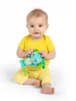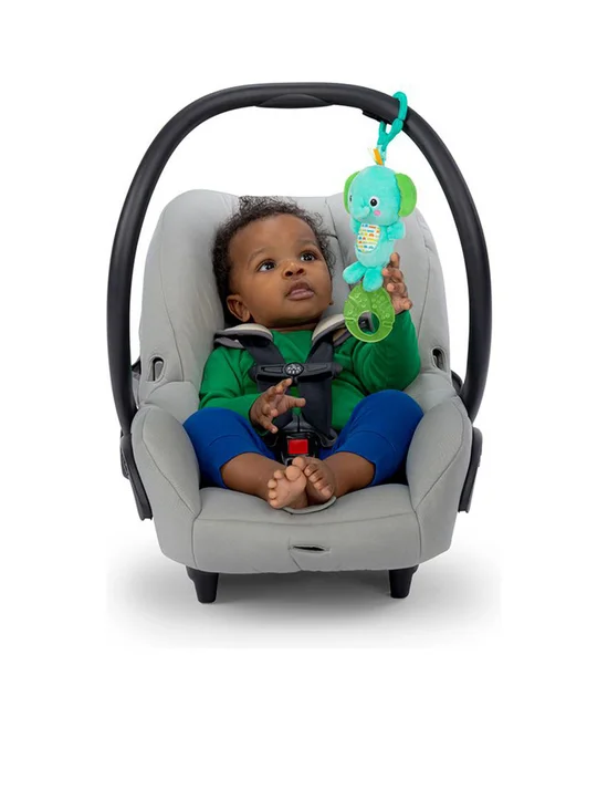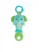BRIGHT STARTS Mobile Dolls and Rattles Tug Tunes On-the-Go Toy Elephant Doll is made from a variety of fabrics that are soft to the touch when kids hold it. Can be hung on a Play Jim Car seat basket, stroller or carry it as a toy in your bag.