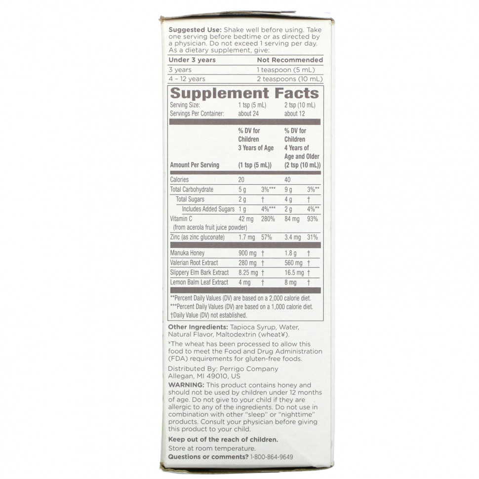 Сироп от кашля для детей Burt’s Bees Kids Nighttime и иммунная поддержка со 100-процентным натуральным медом Манука содержат корень валерианы, ботанический ингредиент, используемый для улучшения сна.