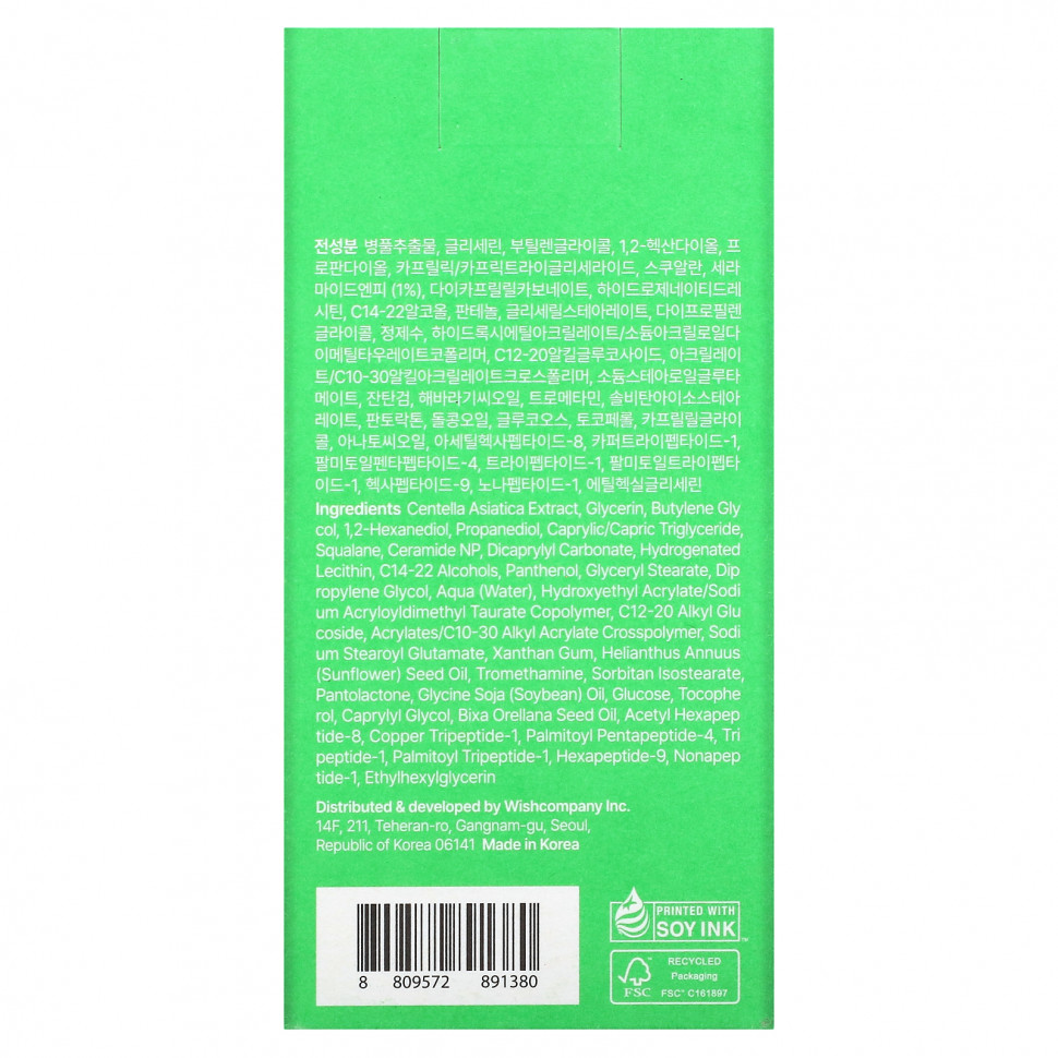 Экстракт готу колы (Centella asiatica), глицерин, бутиленгликоль, 1,2-гександиол, пропандиол, каприловый / каприновый триглицерид и сквалан, керамид NP, дикаприлил карбонат, гидрогенизированный лецитин, спирты C14-22, пантенол, глицерил стеарат, дипропиленгликоль, вода, гидроксиэтил акрилат/натрия акрилоилдиметилтаурата сополимер, С12-20 алкил глюкозид, акрилат/c10-30 алкил акрилат кроссполимер, натрия стеароил глутамат, ксантановая камедь, подсолнечное масло (Helianthus annuus), трометамин, сорбитан изостеарат пантолактон, соевое масло (Glycine soja), глюкозы, токоферол, каприлилгликоль, масло из семян аннато (Bixa orellana), ацетил гексапептид-8, трипептид меди-1, пальмитоил пентапептид-4, трипептид-1, пальмитоил трипептид-1, гексапептид-9, нонапептид-1, этилгексилглицерин.