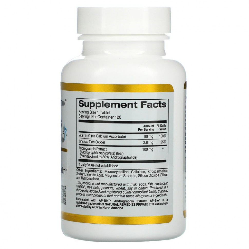 Средство для защиты иммунитета с экстрактом андрографиса AP—BIO® от California Gold Nutrition содержит AP-BIO®, клинически протестированную и быстродействующую форму экстракта андрографиса (Andrographis paniculata) с 7 биоактивными веществами. Оно подходит для вегетарианцев и веганов и не содержит глютена или сои.