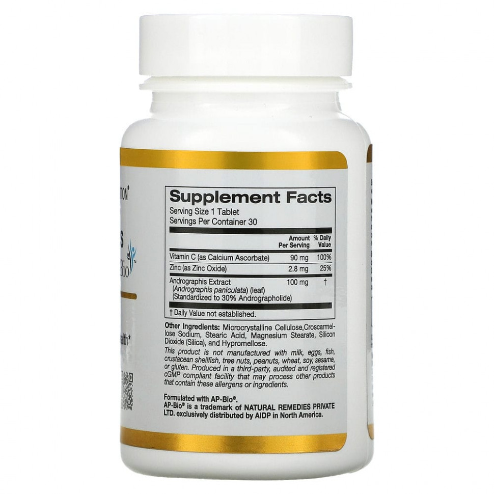Средство для защиты иммунитета с экстрактом андрографиса AP-BIO® от California Gold Nutrition содержит AP-BIO®, клинически протестированную и быстродействующую форму экстракта андрографиса (Andrographis paniculata) с 7 биоактивными веществами. Оно подходит для вегетарианцев и веганов и не содержит глютена или сои. Одна упаковка рассчитана на прием в течение одного месяца (при условии приема согласно рекомендациям).