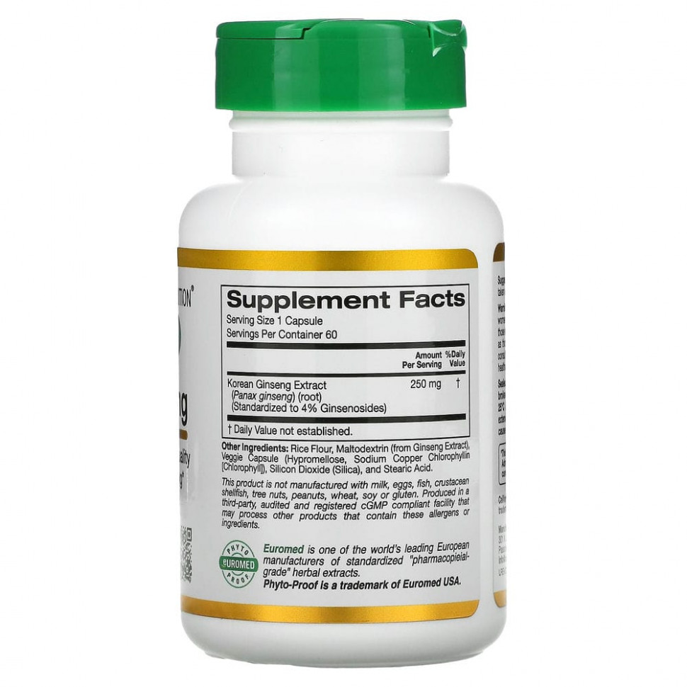 Женьшень обыкновенный (Panax ginseng) от California Gold Nutrition®? EuroHerbs™ содержит экстракт премиального качества, стандартизированный до 4 % гинзенозидов. Зеленые растительные капсулы с красителем природного происхождения изготовлены из хлорофилла, полученного из листьев люцерны и шелковицы.