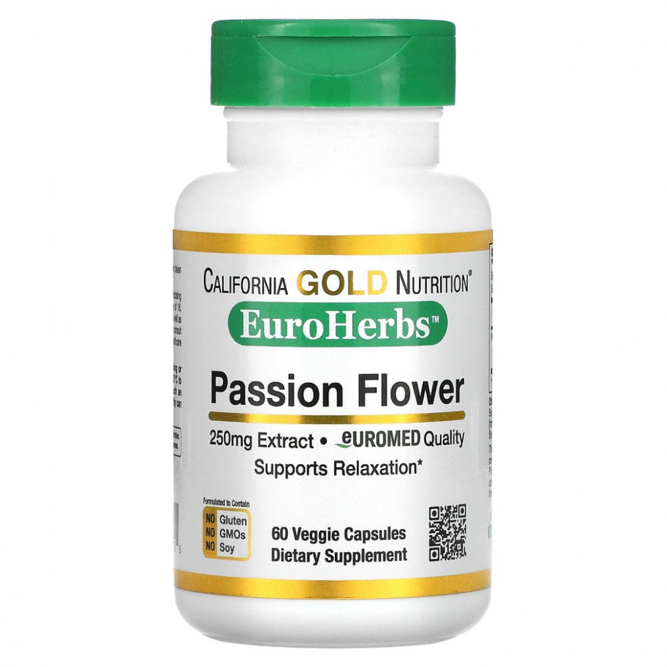 Пассифлора от California Gold Nutrition EuroHerbs™ содержит экстракт лекарственного растения Passiflora incarnata L, стандартизированный до 4% флавоноидов. Зеленые растительные капсулы естественным образом окрашены хлорофиллом, зеленым пигментом, который в природном виде содержится в растениях и извлекается из листьев люцерны и шелковицы.