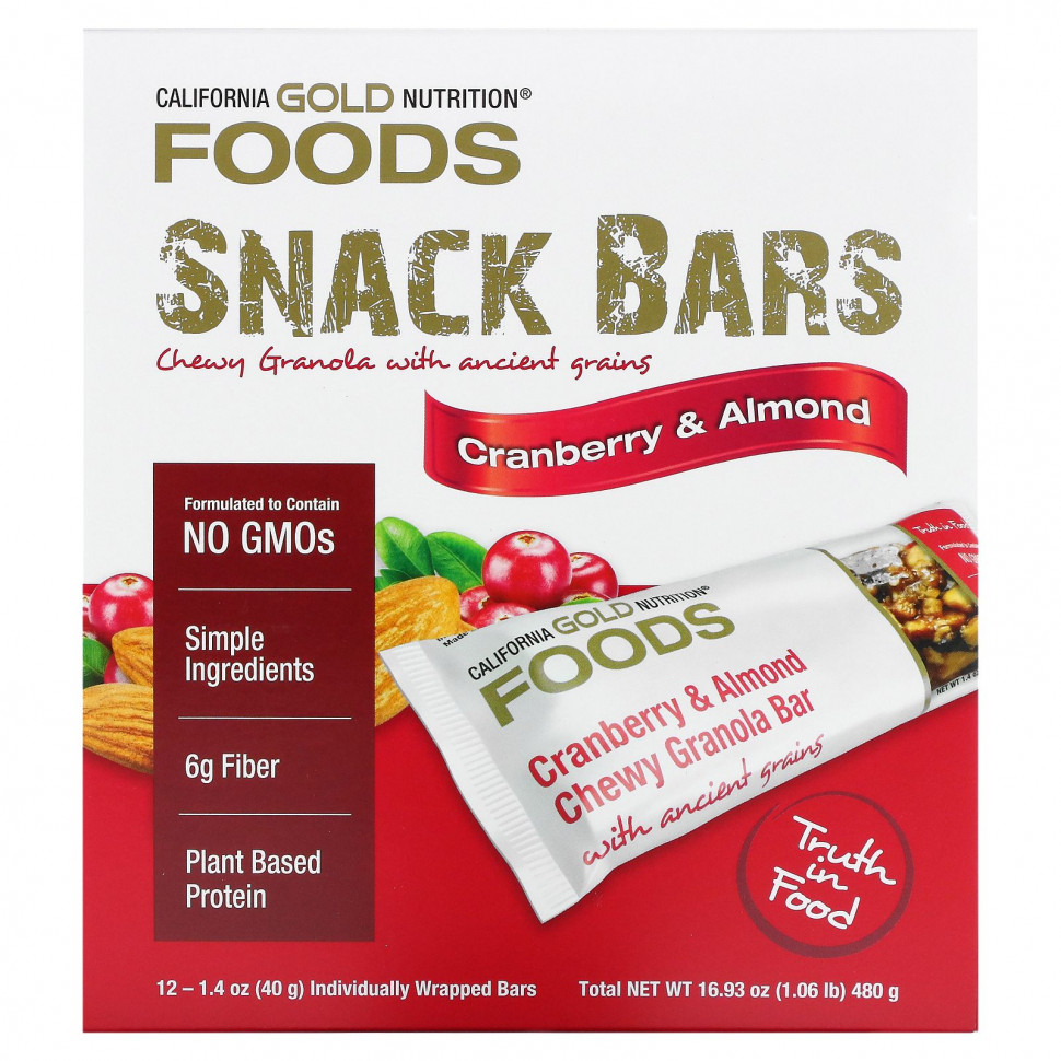 Батончики мюсли с клюквой и миндалем от California Gold Nutrition изготовлены из простых ингредиентов: древних злаков, клюквы, обжаренного миндаля и ягод годжи и являются питательным и сытным лакомством с большим количеством клетчатки и белка. Батончики в индивидуальной упаковке идеальны для перекуса на ходу, в любое время и в любом месте.