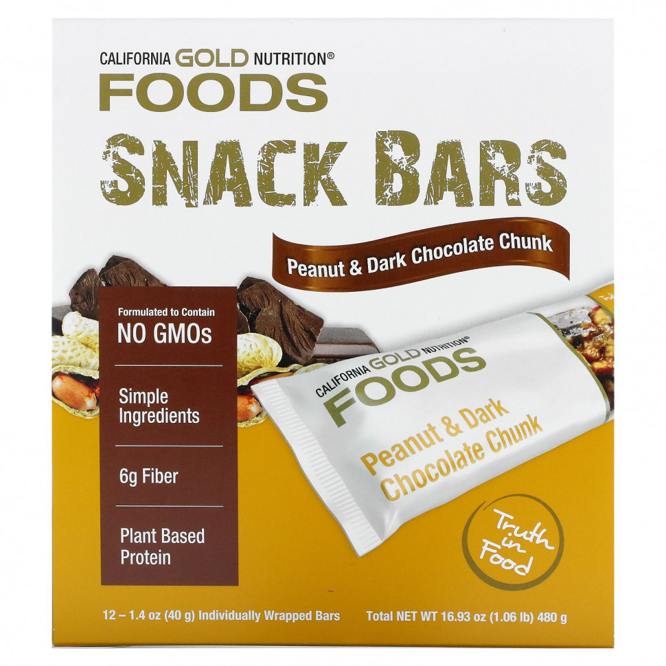 Батончики с арахисом и кусочками темного шоколада California Gold Nutrition изготовлены из шоколада и орехов премиального качества и являются питательным и сытным лакомством с большим количеством клетчатки и белка. Батончики в индивидуальной упаковке идеальны для перекуса на ходу, в любое время и в любом месте.