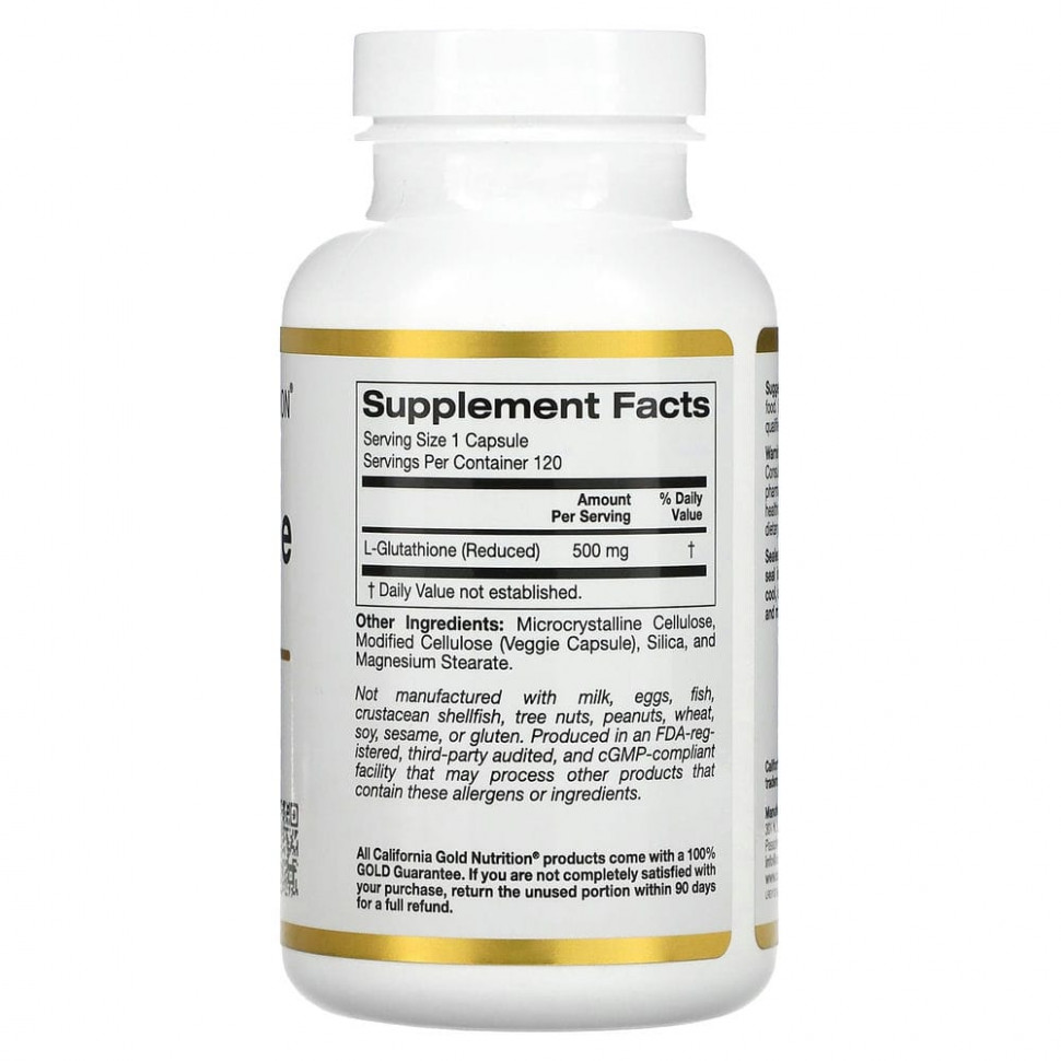 L-глутатион (восстановленный) California Gold Nutrition доступен в растительных капсулах.
