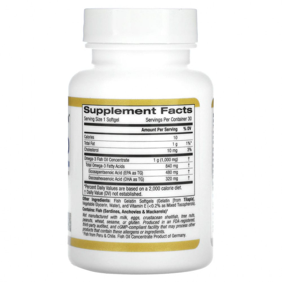 Омега 800, рыбий жир фармацевтической степени чистоты от California Gold Nutrition содержит высококачественный концентрат рыбьего жира KD-P?R® IFOS™ с оценкой 5 звезд, изготовленный в Германии и специально разработанный для людей, которым необходима сверхконцентрированная капсула для приема один раз в день. Каждая доза омега 800 содержит рыбий жир самого высокого качества с не менее чем 80% ЭПК и ДГК и предлагается по самой выгодной стоимости.