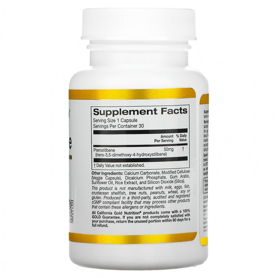 Птеростильбен от California Gold Nutrition доступен в растительных капсулах.