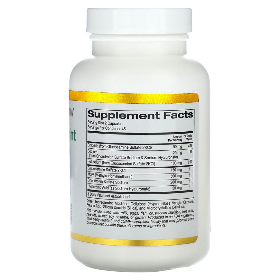 Растительная добавка для здоровья суставов от California Gold Nutrition поддерживает здоровье суставов с помощью глюкозамина, хондроитина, МСМ и гиалуроновой кислоты неживотного происхождения*.