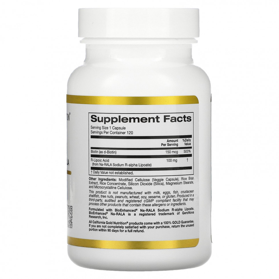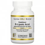Стабилизированная R-липоевая кислота от California Gold Nutrition представляет собой натриевую соль R-альфа-липоевой кислоты BioEnhanced® Na-RALA и биотин в растительных капсулах.