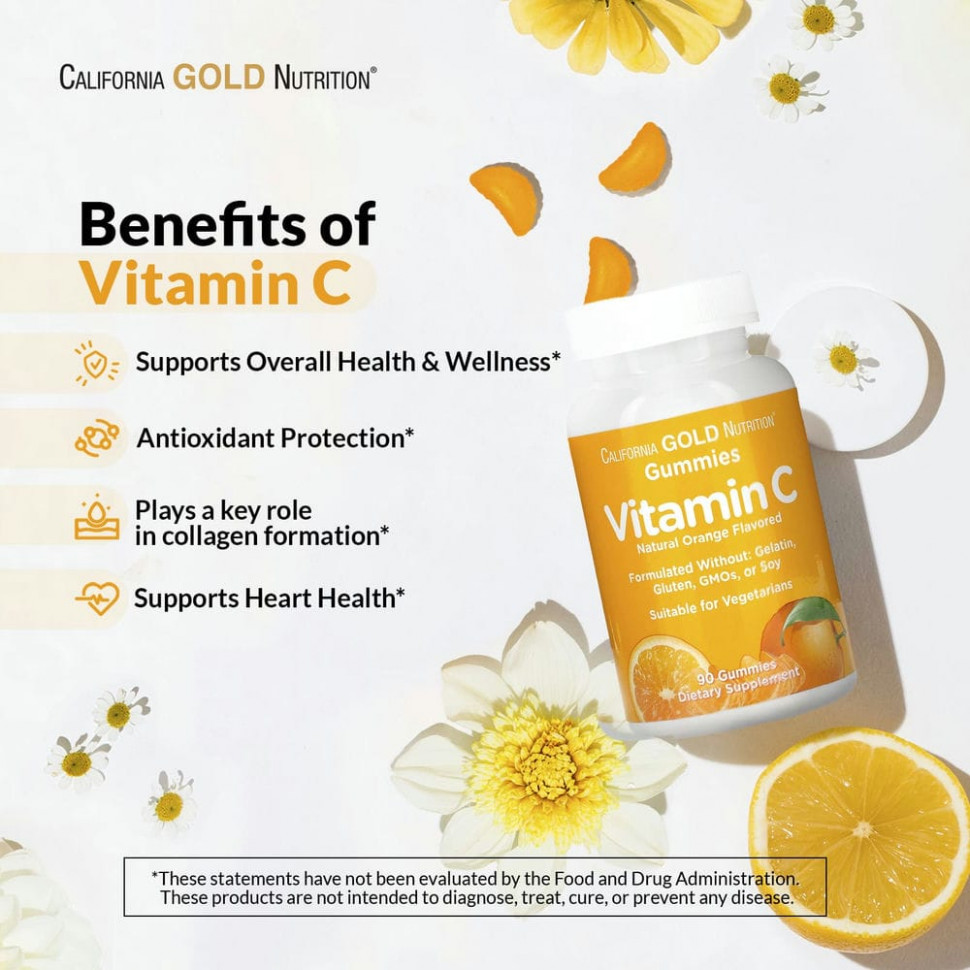 Витамин С — это незаменимое питательное вещество, которое поддерживает здоровье иммунной системы, кожи и соединительной ткани, а также обеспечивает антиоксидантную защиту*.