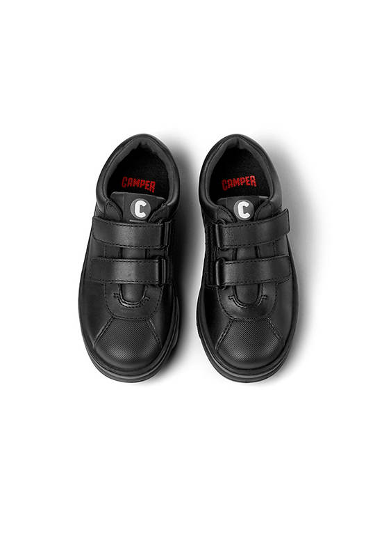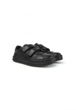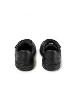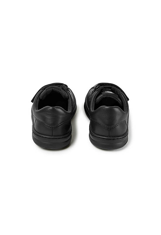 Black full grain leather and textile velcro sneaker for boys with stitched rubber outsole.