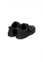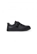 Black full grain leather and textile sneaker for boys with stitched rubber outsole.