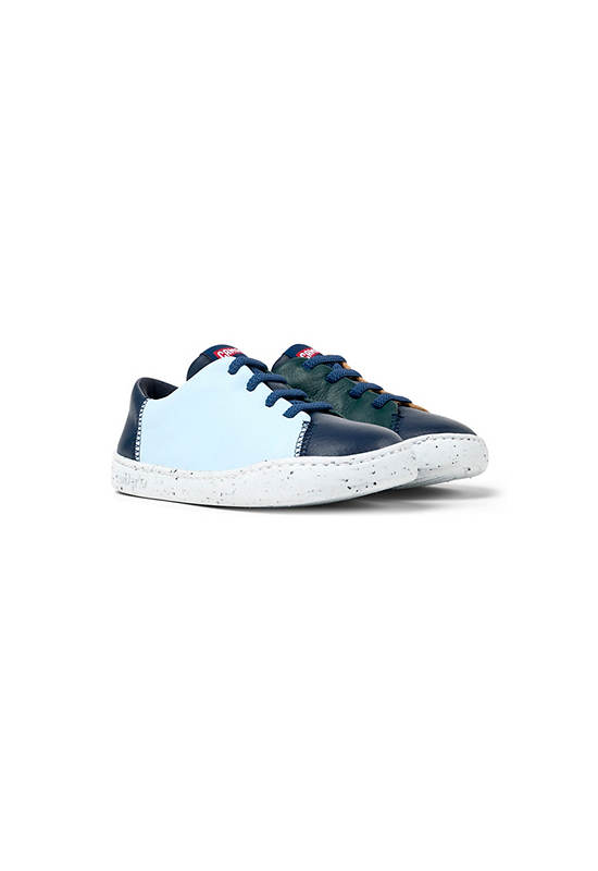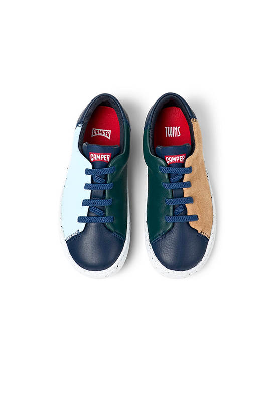 Multicolor leather and nubuck boots for kids with PU removable footbed and 100% EVA outsoles (20% recycled).