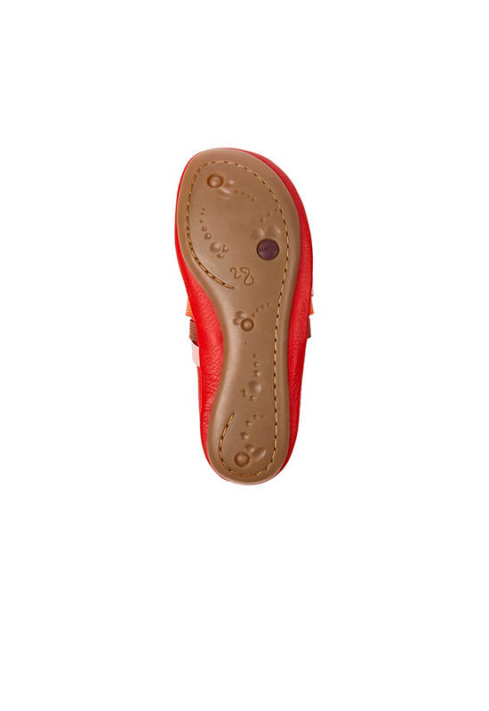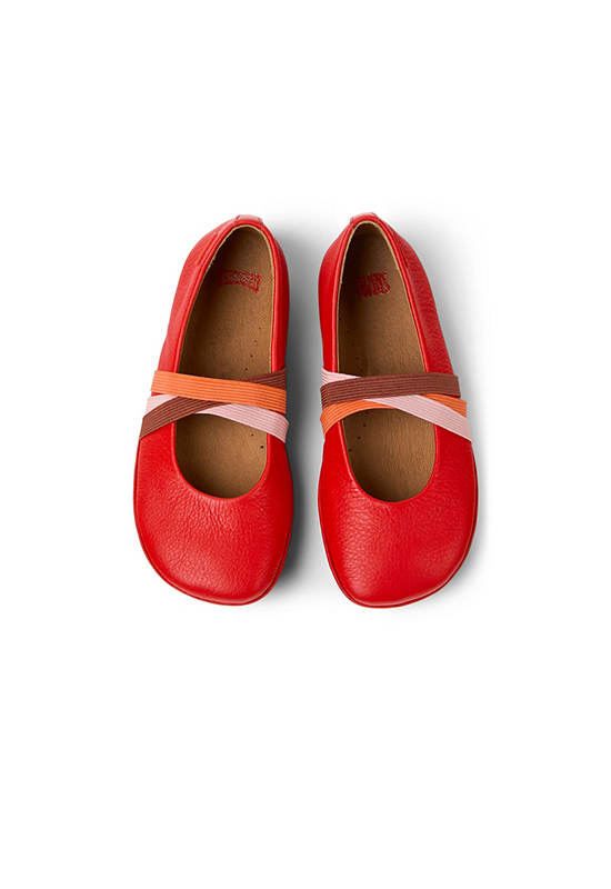 Red leather ballerinas for kids with elastic band and 100% rubber outsoles.