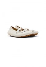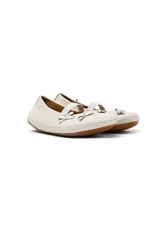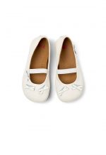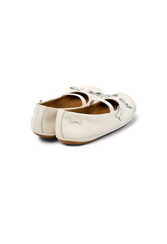 White leather kids’ ballerina with EVA footbed and recycled rubber outsoles (20% recycled).