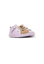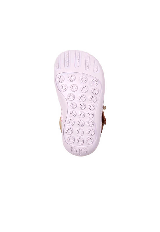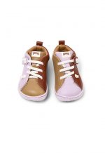 Multicolor water saving leather kids’ shoes with hook-and-loop closing system and rubber outsoles (20% recycled).