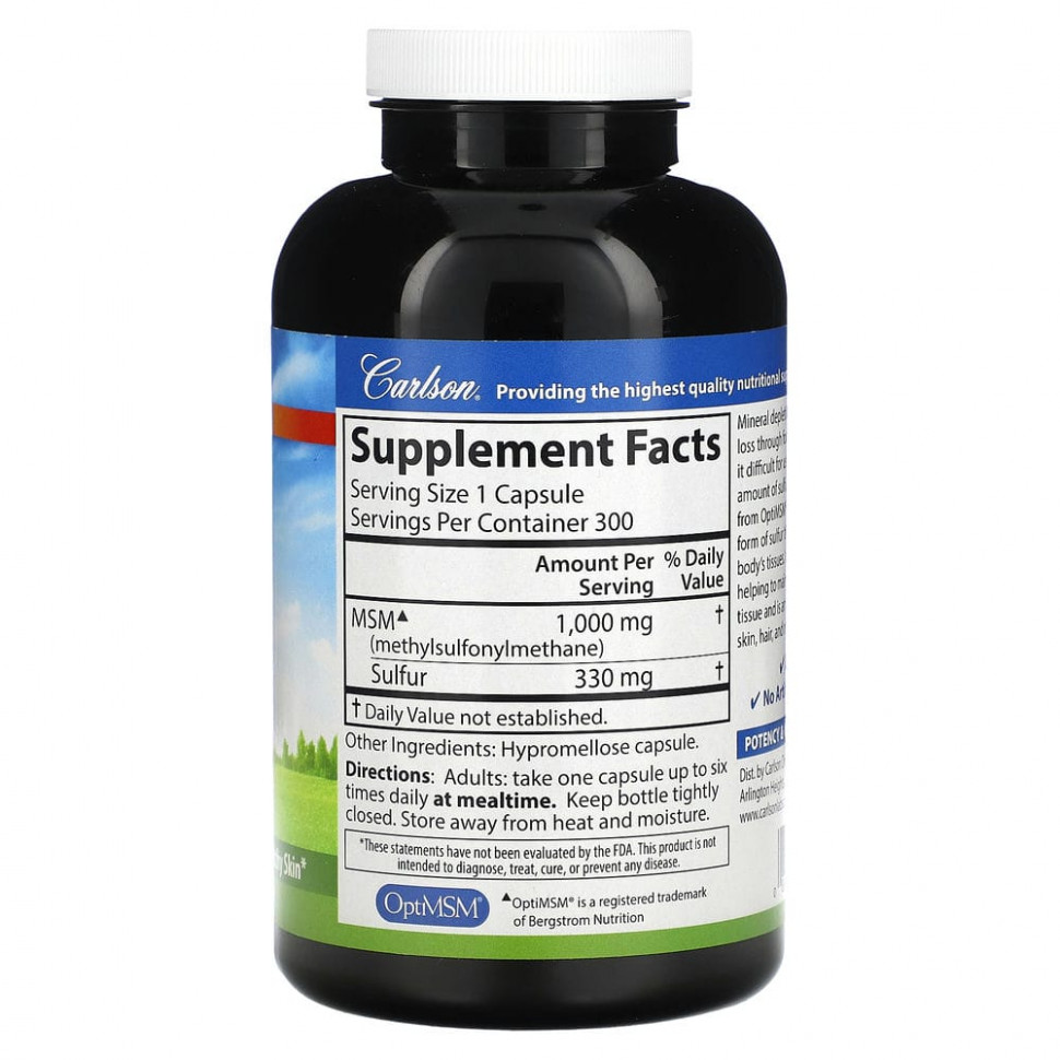 Истощение запасов серы в почве и их потеря из-за приготовления пищи затрудняют получение необходимого количества серы. Сера Carlson MSM от OptiMSM® — это форма серы с высокой биодоступностью, которая содержится во многих тканях нашего организма. Она сохраняет здоровье суставов, поддерживает нормальное состояние соединительной ткани, выступает важным компонентом белков кожи, волос и ногтей.