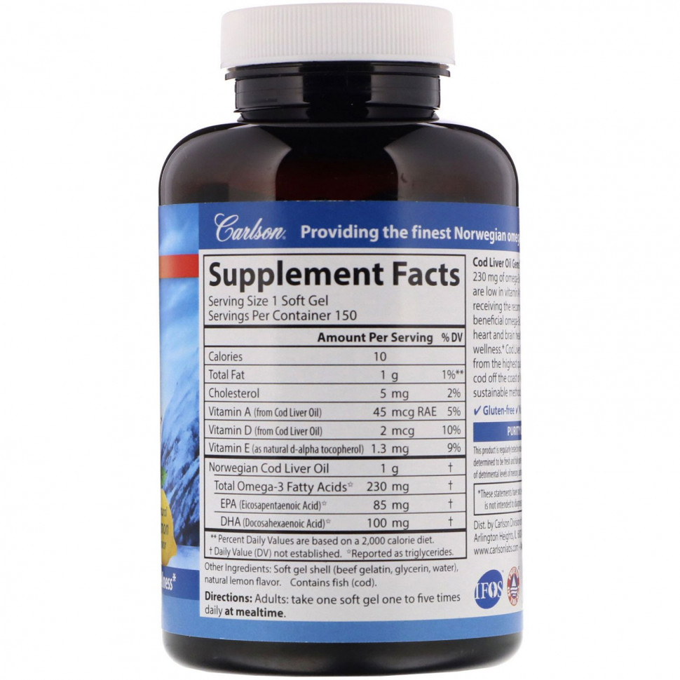 Жир печени трески Драгоценные камни с низким содержанием витамина А содержат 230 мг омега-3 в одном мягком геле и содержат мало витамина А для тех, кто уже получает рекомендуемую суточную дозу. Полезные кислоты омега-3 ЭПК и ДГК поддерживают здоровье сердца и мозга и способствуют оптимальному самочувствию. Жир печени трески получают из арктической трески высочайшего качества, добытой у берегов Норвегии с использованием традиционных и экологически безопасных методов.