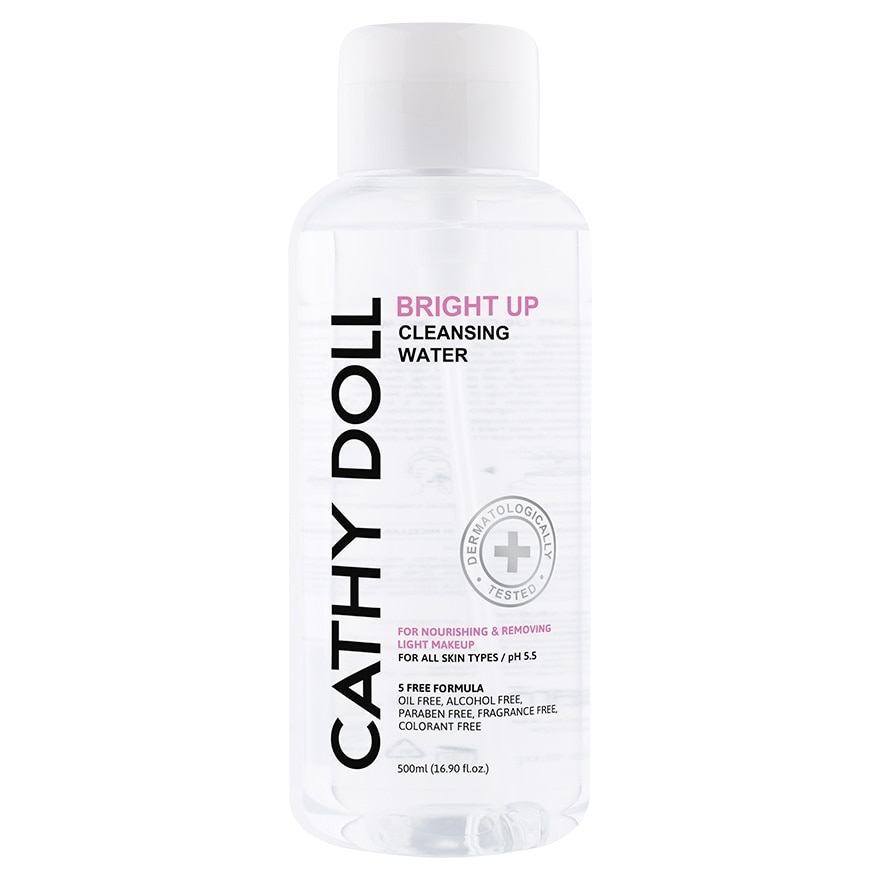 Cathy Doll Bright Up Cleansing Water This makeup cleansing water provides deep cleaning for skin in one step and is enriched with Micellar that aids in removing makeup residues and impurities with its fine particles benefits.
