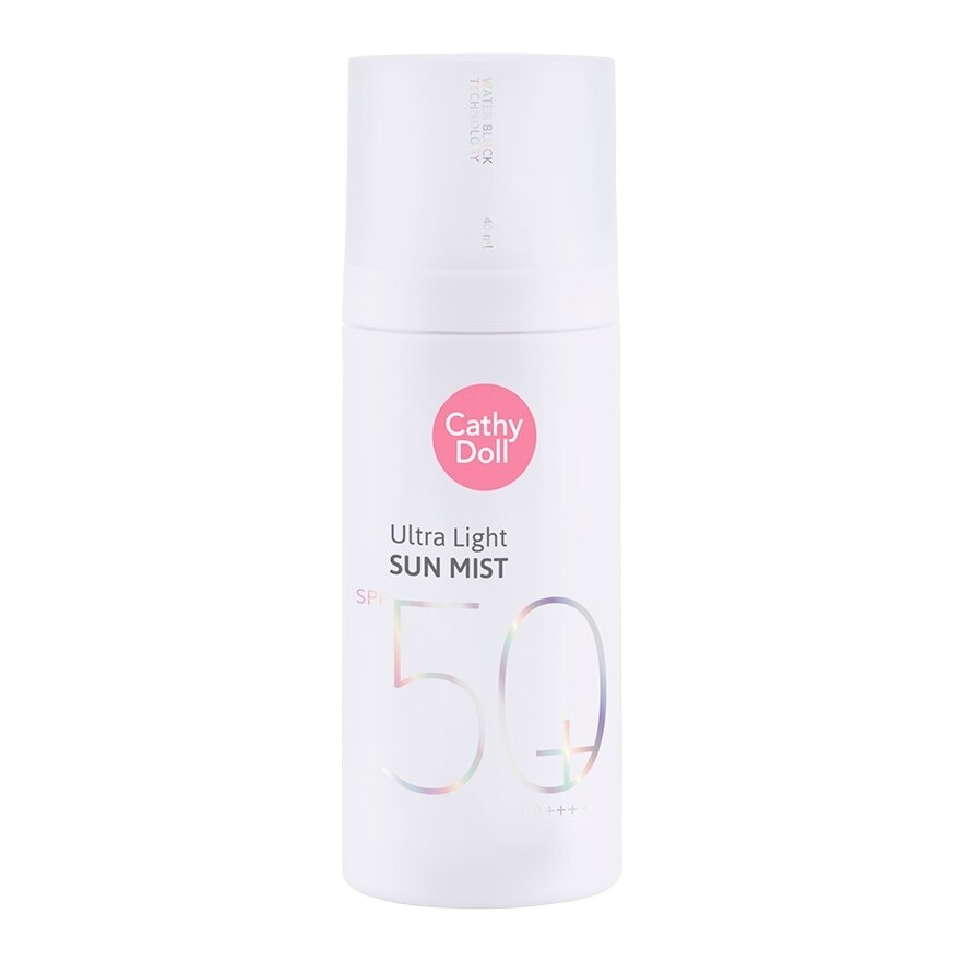 Cathy Doll Ultra Light Sun Mist Spray SPF50+ PA++++ Elevate your sun protection game with this fine lightweight and non greasy mist sunscreen With its Water Block Technology it creates a protective film that shields your skin from water sweat UVA UVB and infrared rays Offering SPF50 this sunscreen mist safeguards against premature aging and dullness Infused with Macadamia Nut Oil and Canola Oil Extracts it nourishes and soothes your skin without causing any skin discomforts What sets it apart is its unique blend of 3 types of Ceramides NP NS and EOP which strengthen your skin natural barrier and lock in moisture Suitable for daily use it allows you to confidently face the sun while enjoying a fresh fragrance Plus it is free from chemicals such as Colorant Paraben Gas Oxybenzone Octinoxate 4 Methylbenzyl Camphor and Butylparaben that can harm coral reefs.
