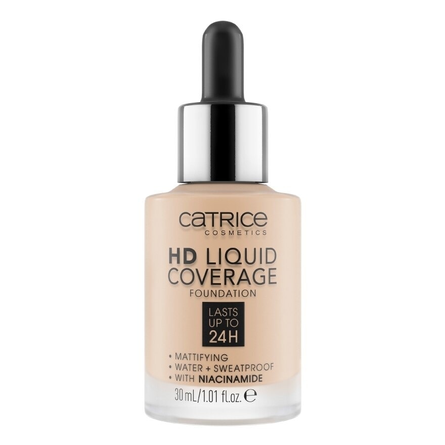 The HD Liquid Coverage Foundation offers a high but natural-looking coverage, while feeling extremely lightweight just like a second skin. Whilst providing a smooth and even complexion, the ultra-liquid texture is extremely high performing and longlasting. It covers imperfections up to 24 Hours and mattifies the skin.