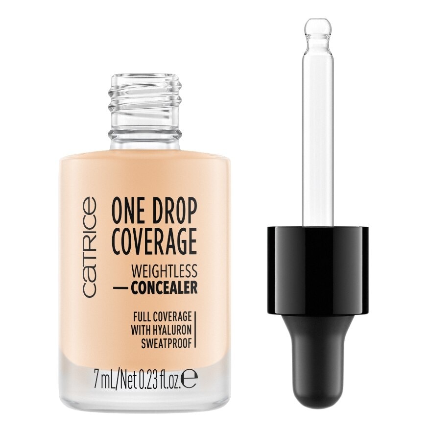 This Catrice One Drop Coverage Weightless Concealer is all you need. The long-lasting, sweat-proof concealer with strong coverage and an ultra-light texture. Just a drop of the concealer is enough for full coverage. At the same time, it moisturizes thanks to hyaluronic acid. Available in 8 different colours.