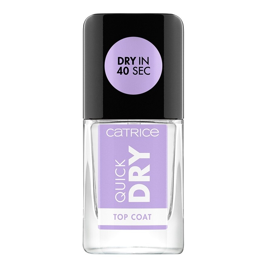 The Quick Dry Top Coat gives the nails a high-shine glossy finish, extends the durability of the colour nail polish and best of all: It dries super-fast within just 40 seconds. Simply apply a thin layer of the vegan top coat on top of dry nail polish, wait 40 seconds and your freshly manicured nails are good to go.With this top coat, every day is a good nail day: Simply apply a thin layer of the vegan overcoat, wait 40 seconds and the freshly manicured nails are good to go. Pro-tip: Never blow on the nail polish to dry, because the humid air will only make it take longer.