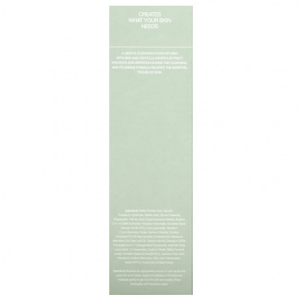 Нежная очищающая пенка с экстрактом бха и центеллы азиатской предотвращает раздражение кожи во время очищения, а ее уникальная формула успокаивает чувствительную, проблемную кожу.