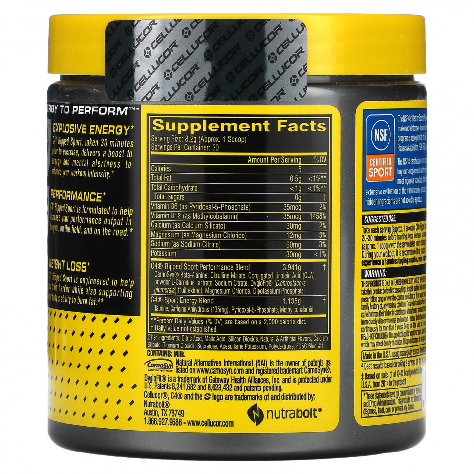 C4® Ripped Sport разработан, чтобы помочь вам тренироваться, а также поддерживает способность вашего организма сжигать жир. ?