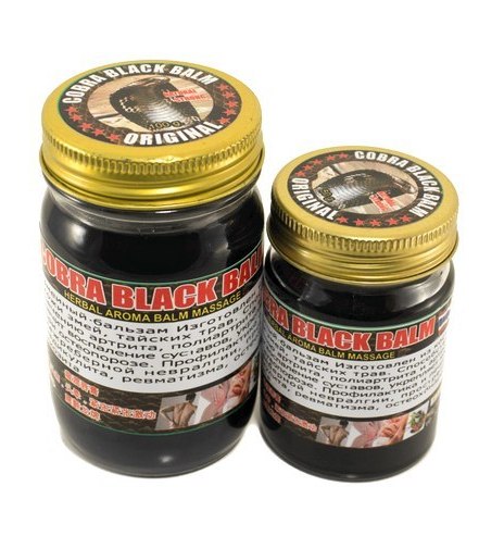 Черный бальзам, изготовленный в Таиланде, имеет сложный состав и молниеносное действие! Среди более сотни компонентов почетные места занимают кокосовое масло, облегчающее нанесение и проникновение активных веществ, а также жир и яд Королевской Кобры, в малых дозах считающихся ценнейшими и эффективнейшими лечебными продуктами. Бальзам обладает выраженным разогревающим действием, при нанесении массажными движениями он быстро начинает работать, надолго устраняет дискомфорт, не оставляя пятен на одежде и постельном белье.