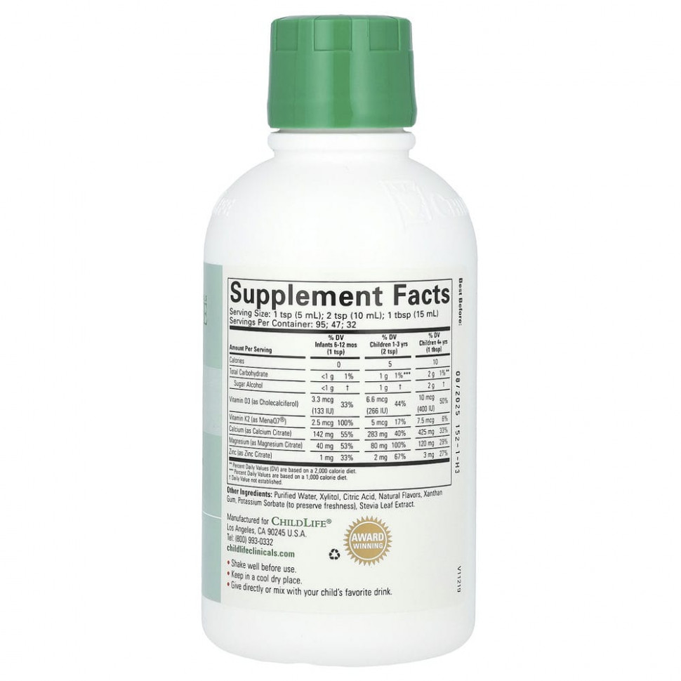 Препарат Bone Health от ChildLife® Clinicals содержит кальций и магний в сочетании с витамином D3 и витамином K2 в сбалансированном, хорошо усваиваемом составе с прекрасным вкусом. Это основные питательные вещества, необходимые для поддержания здорового роста и развития костей вашего ребенка.