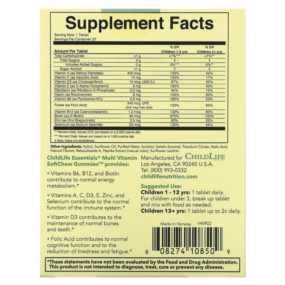 Мультивитамин SoftMelts™ от ChildLife® содержит: