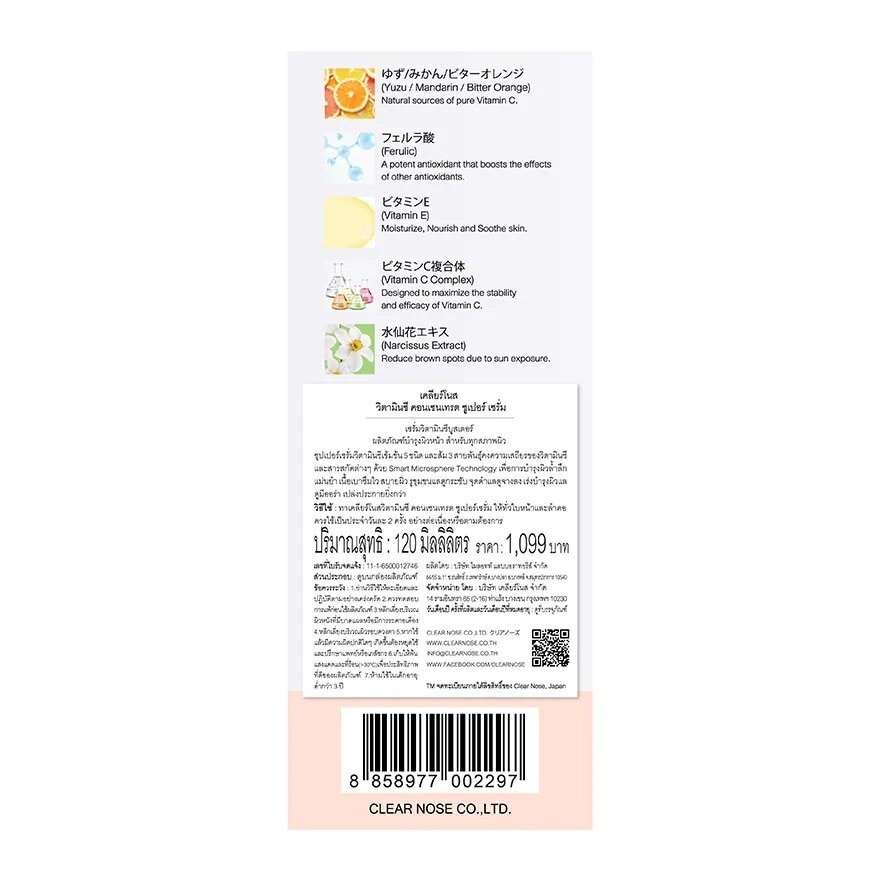 contains the powerful combination (5-type vitamin C, E, Ferulic, and 3 kinds of orange extracts) that enhances one another to brighten dull skin, visibly reduce fine lines.