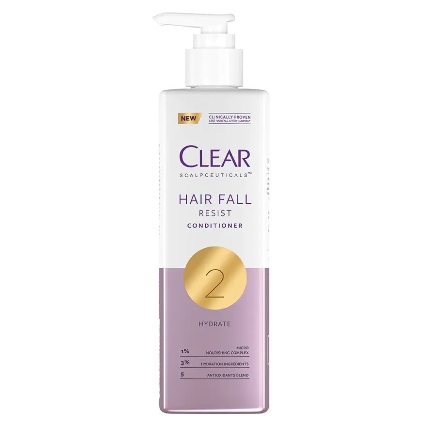 Clear Scalpceuticals Conditioner Hair Fall Resist The advanced hair regime is the next level of protection against Hair-Fall with 3 steps of nourishment, similar to Skin Care technique. For confident and beautiful hair from scalp to end. Your hair won't leave you easily. Lightweight formula, with Biotin, hydrates, while repairing and strengthening hair fibers. Clinically provien to strengthen hair anchorage. grow new and stronger hair growth and less hair-fall. For visibly thicker hair volume. Gentle enough for regular use with no parabens and dyes.Use after Step 1 optimal anti-hair fall results. With system usage, based on subject self-assesment.