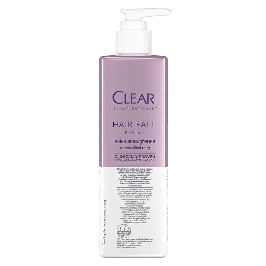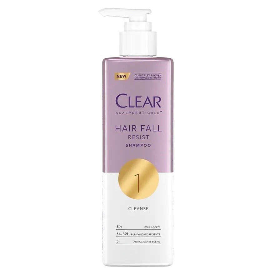 Clear Scalpceuticals Shampoo Hair Fall Resist The advanced hair regime is the next level of protection against Hair-Fall with 3 steps of nourishment, similar to Skin Care technique. For confident and beautiful hair from scalp to end. Your hair won't leave you easily. With Follilock technology together with Vitamin A,C, E and anti-oxidants, to protect against hair-fall. Clinically provien to strengthen hair anchorage. grow new and stronger hair growth and less hair-fall. For visibly thicker hair volume. While deeply purify and nourish scalp and hair for healthier and stronger hair. Gentle formulation for every day use. No parabens and dyes. With system usage, based on subject self-assesment.