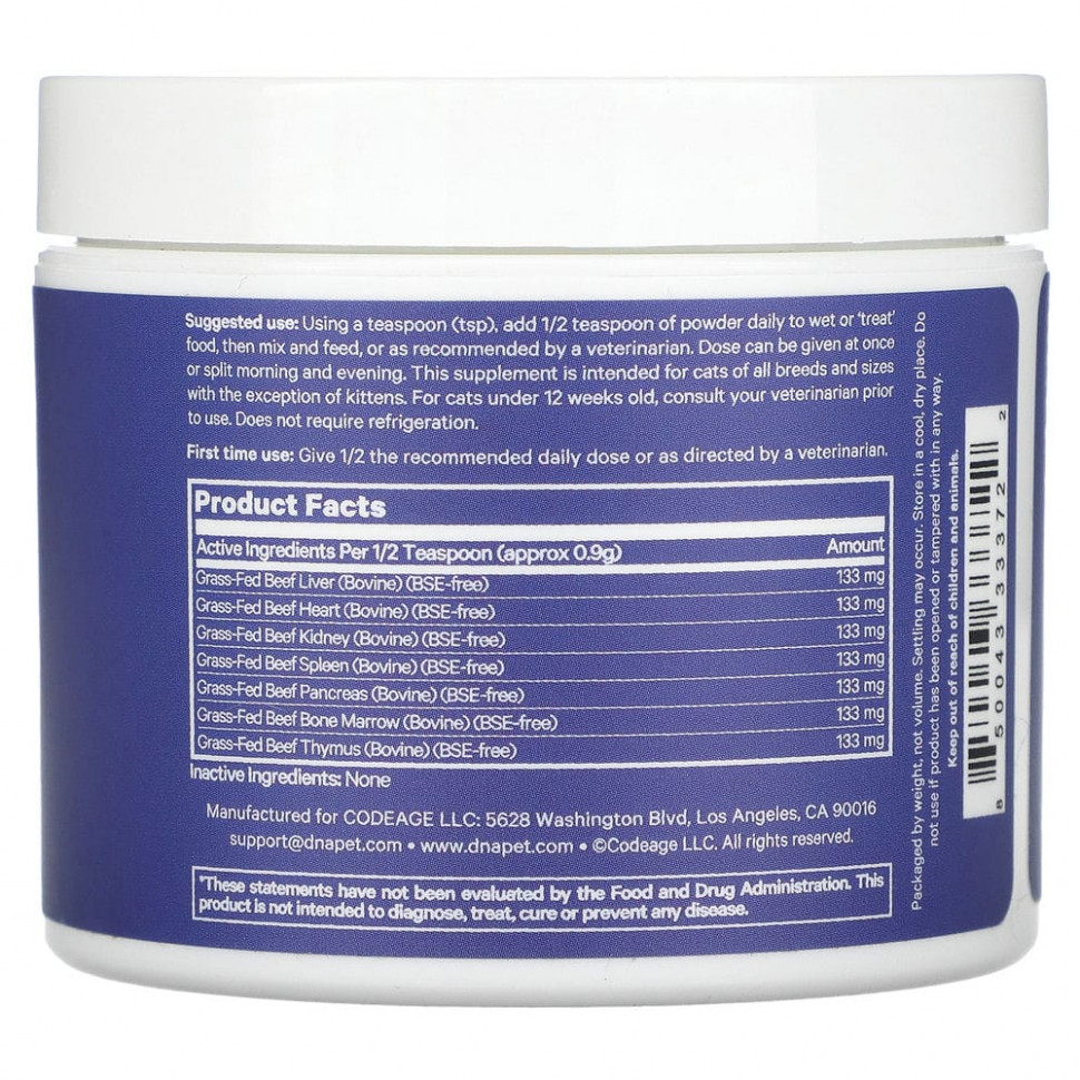 ДНК PET Happy Healthy Organs для кошек изготовлен из 100% лиофилизированных сырых говяжьих печени травяного откорма, сердца, почек, селезенки, поджелудочной железы, костного мозга и порошка вилочковой железы крупного рогатого скота, чтобы обеспечить полный спектр питательных веществ для вашей кошки .