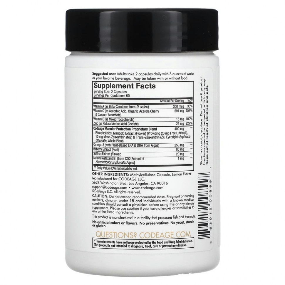 Витамины для глаз и добавка для глаз, в состав которой входят ингредиенты формулы AREDS 2 с такими питательными веществами, как астаксантин, лютеин, зеаксантин и витамин А. & С, цинк, веганские омега-3 и фосфолипиды.