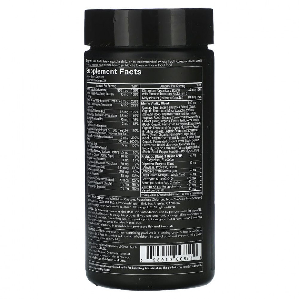 Формула поливитаминов для ежедневного приема должна быть удобной, полной и понятной. У мужчин есть свои особые потребности. Эта веганская формула проста в использовании и содержит множество необходимых витаминов. Для приема один раз в день.