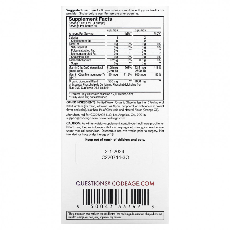 Органическая липосомальная смесь незаменимых фосфолипидов, содержащая фосфатидилхолин из подсолнечного масла без ГМО и лецитин | 500 мг | ** | 1000 мг | ** |