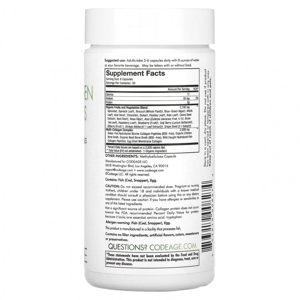 Универсальная формула коллагена, содержащая пять типов коллагена, органический костный бульон, органическую зелень, фрукты и витамины из цельных продуктов для создания усовершенствованного гидролизованного мультиколлагенового раствора.