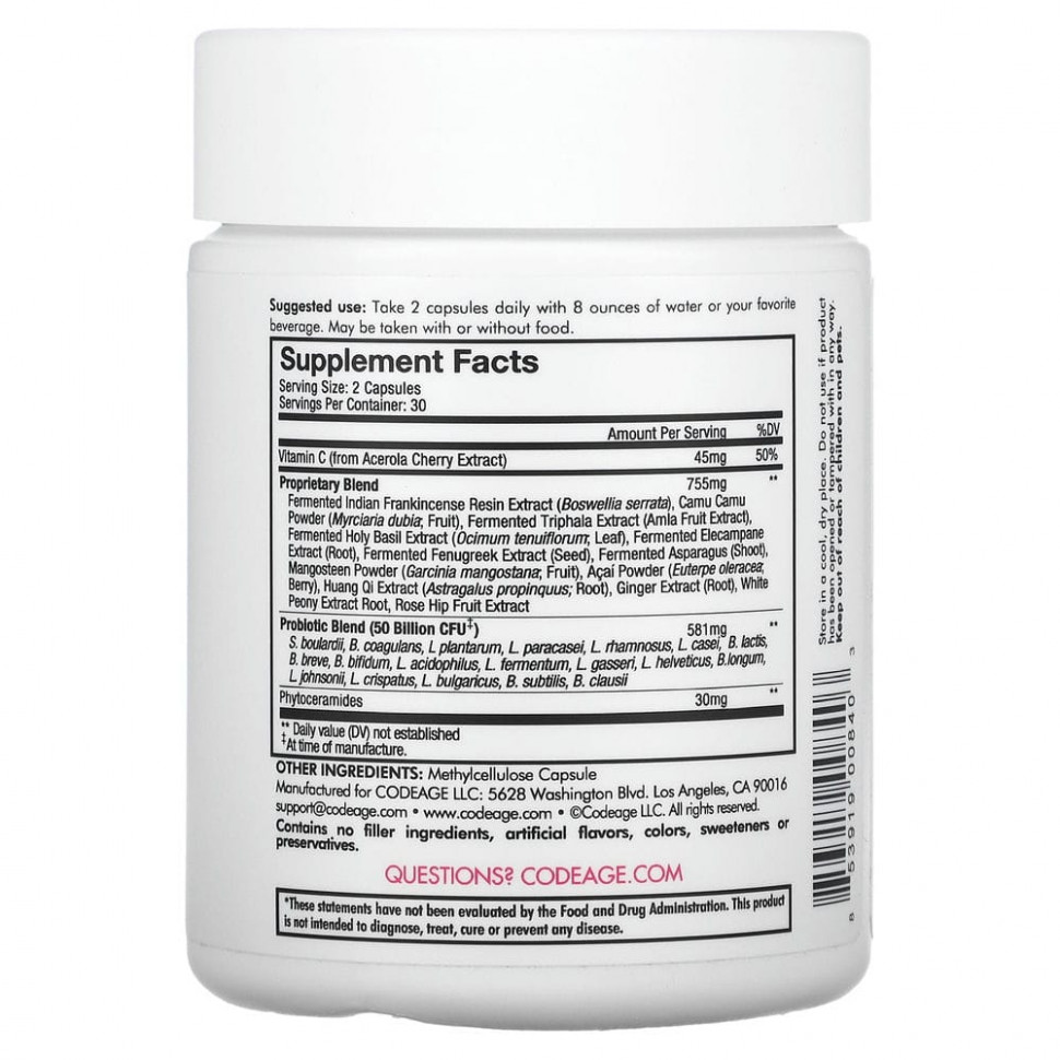 Добавка Codeage Skin Probiotic содержит 19 штаммов пробиотиков, содержащих 50 миллиардов КОЕ на порцию, а также витамин С и растительные травы.