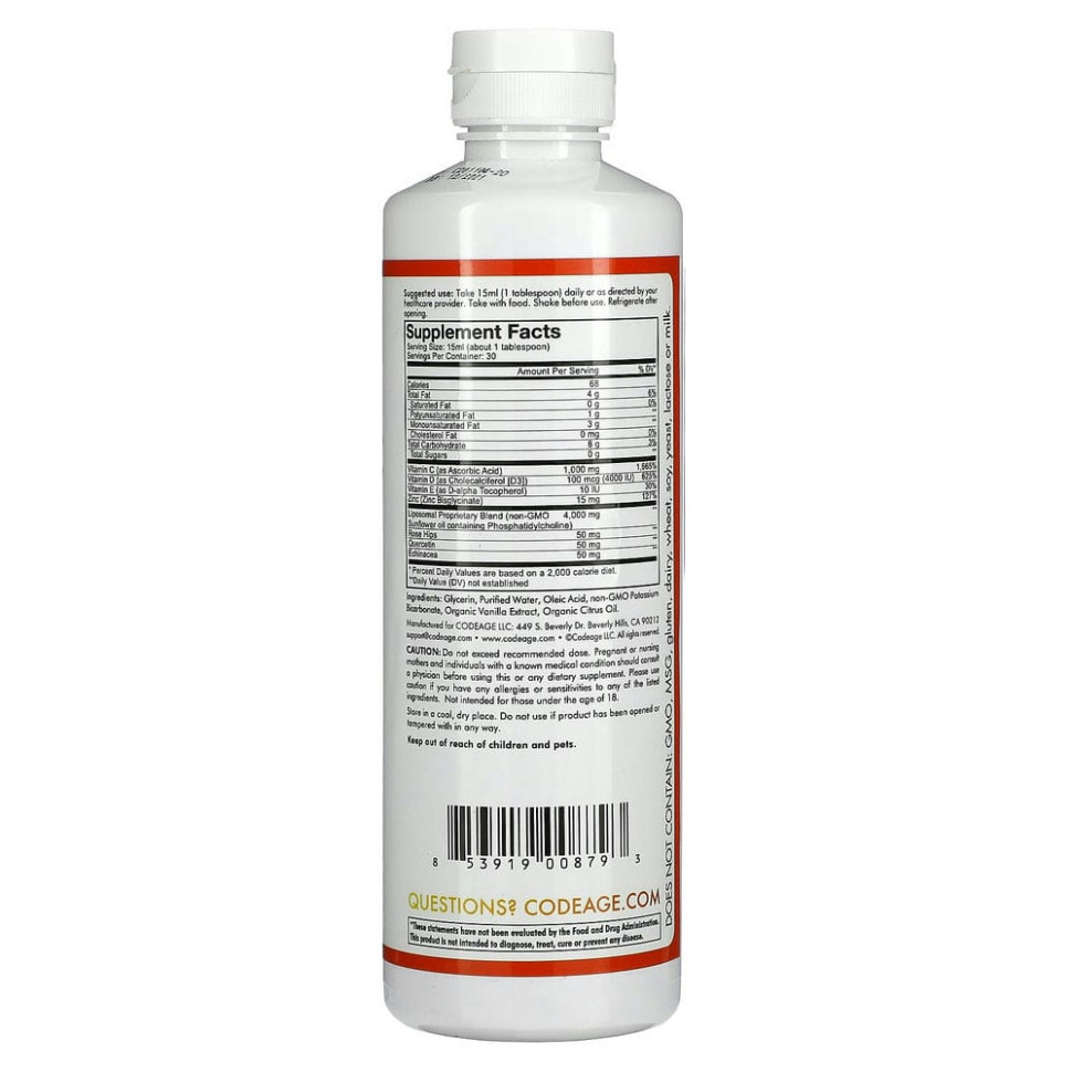 Витамины C, D3, E & цинка в восхитительном липосомальном жидком растворе апельсина и мандарина.