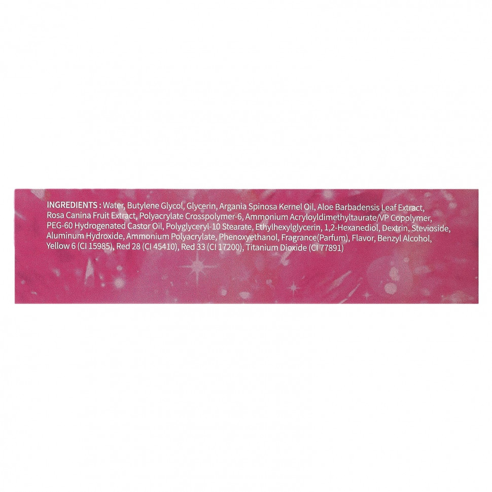 Вода, бутиленгликоль, глицерин, аргановое масло (Argania spinosa), экстракт листьев алоэ вера, экстракт плодов розовой розы, полиакрилата кроссполимер-6, акрилоилдиметилтаурат аммония / ВП сополимер, ПЭГ-60 гидрогенизированное касторовое масло, полиглицерил-10 стеарат, этилгексилглицерин, 1,2-гександиол, декстрин, стевиозид, гидроксид алюминия, полиакрилат аммония, феноксиэтанол, отдушка (парфюмерная композиция), ароматизатор, бензиловый спирт, желтый 6 (CI 15985), краситель красный 28 (CI 45410), краситель красный 33 (CI 17200), диоксид титана (CI 77891).
