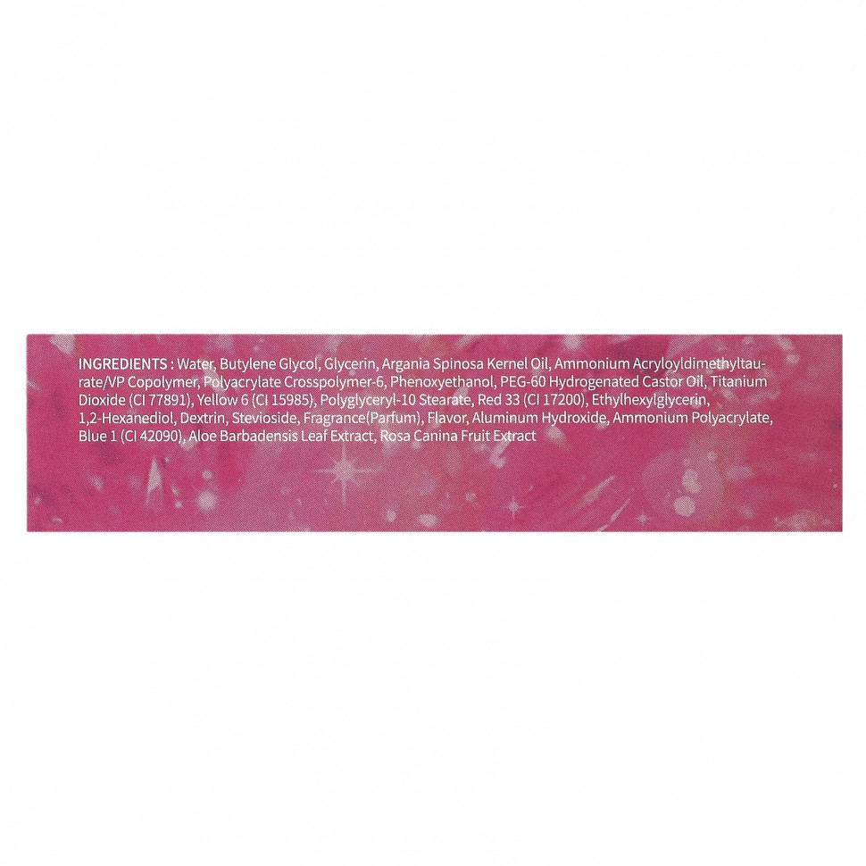 Вода, бутиленгликоль, глицерин, аргановое масло (Argania spinosa), аммоний акрилоилдиметилтаурат/ВП сополимер, полиакрилата кроссполимер-6, феноксиэтанол, ПЭГ-60 гидрогенизированное касторовое масло, диоксид титана (CI 77891), краситель желтый 6 (CI 15985), полиглицерил-10 стеарат, краситель красный 33 (CI 17200), этилгексилглицерин, 1,2-гександиол, декстрин, стевиозид, отдушка (парфюмерная композиция), ароматизатор, гидроксид алюминия, полиакрилат аммония, краситель синий 1 (CI 42090), экстракт листьев алоэ вера (Aloe barbadensis), экстракт плодов розовой (Rosa canina).
