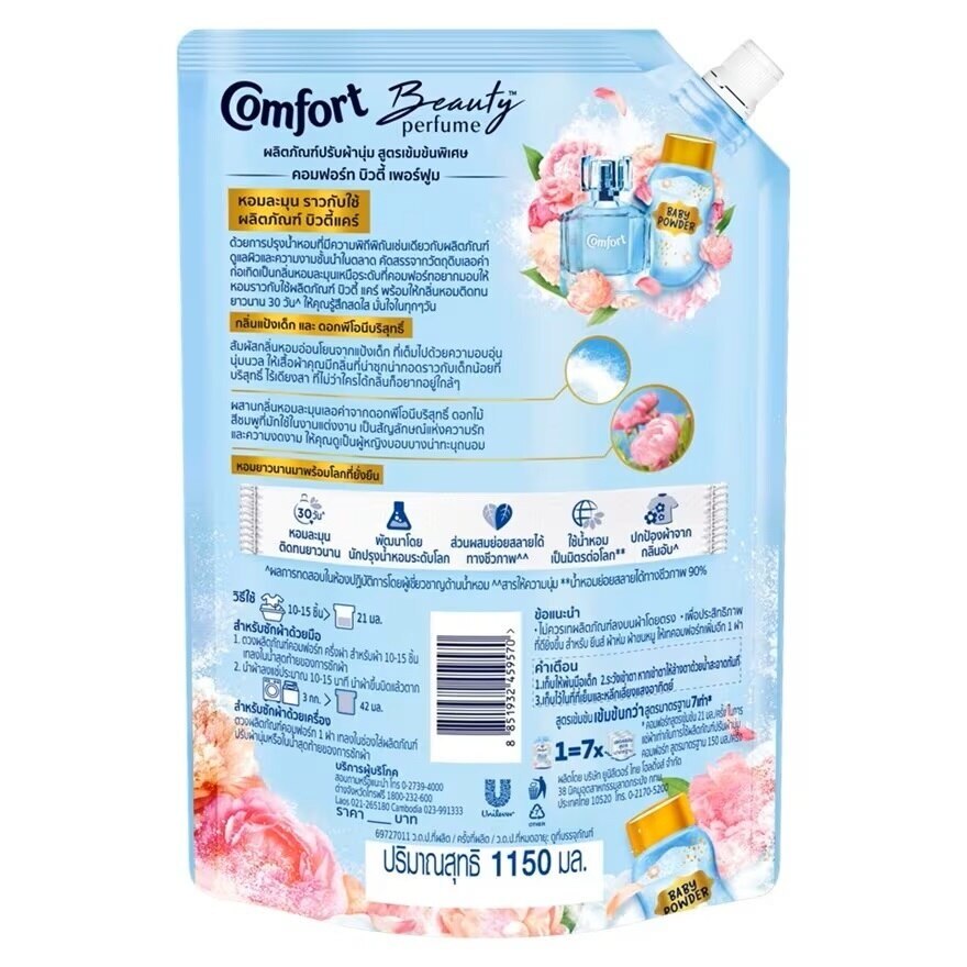 Comfort Beauty Perfume. Beautiful amp; Delicate Scent Inspired by Beauty Care. Bringing the same fragrance innovation used in leading beauty amp; skin care brands in the market, creating the most beautiful scent. Comfort Beauty Perfume Softener Baby Powder amp; Innoscent Peony smell great, as if you're using beauty care products, and it lasts long for 30 days Baby Powder amp; Innoscent Peony fragrance Experience a gentle fragrance like baby powder mixing with delicate amp; Luxurious fragrance from peony flower, give a feeling of delicate amp; cherish like a gorgeous lady.
