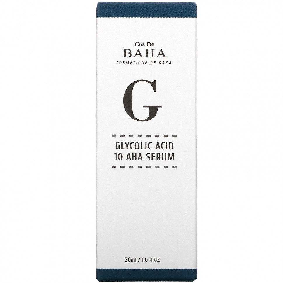 Сыворотка Cos De BAHA с гликолевой кислотой 10 AHA содержит 10% альфагидроксикислоту (АГК) и экстракты трав в качестве активных ингредиентов.