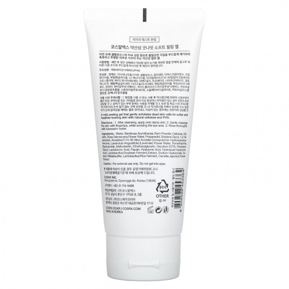 Мягкий отшелушивающий гель с натуральной целлюлозой и ПГК мягко отшелушивает омертвевшие клетки кожи, делая ее более мягкой и здоровой.