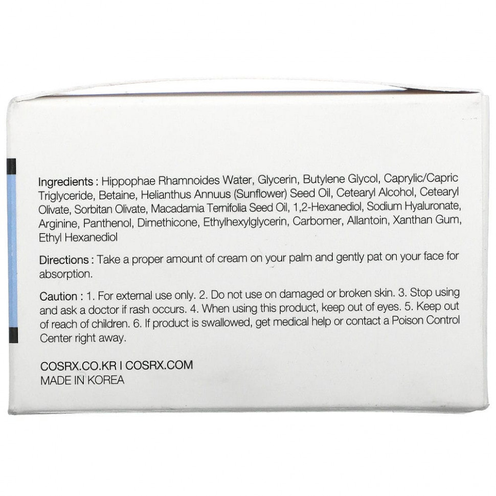 Высококонцентрированный с водой Hippophae Rhamnoides и гиалуроновой кислотой: Интенсивный крем с гиалуроновой кислотой COSRX — это питательное увлажняющее средство, идеально подходящее для сухой / обезвоженной кожи.